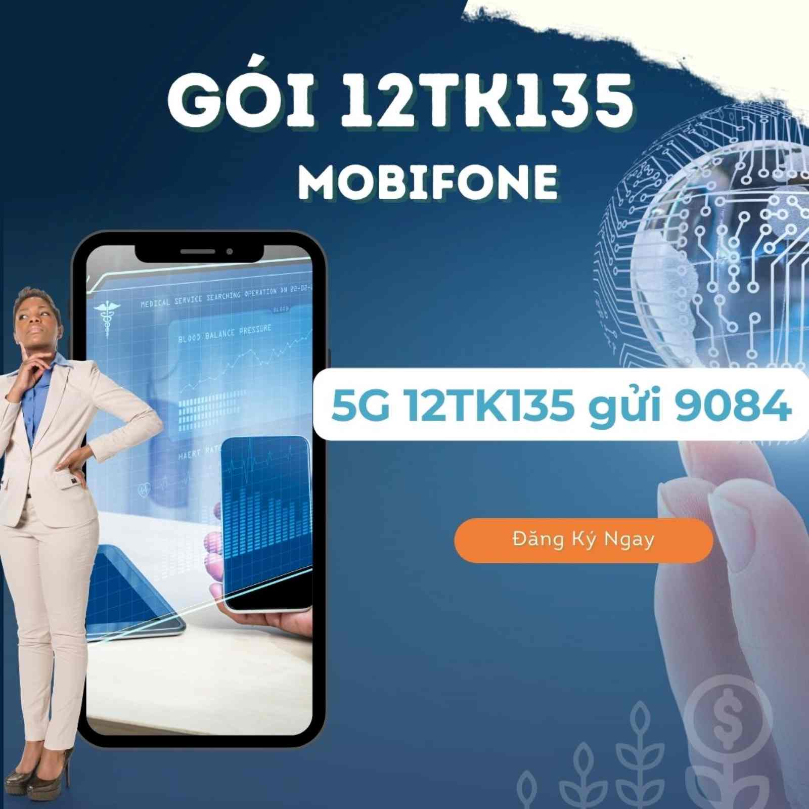 Cú pháp đăng ký 4g mobi 12TK135 MobiFone: 5G 12TK135 gửi 9084